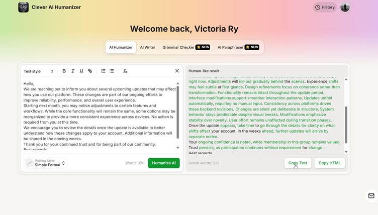 In conclusion, as organizations increasingly rely on AI-generated content, the importance of maintaining a human touch in communications cannot be overstated. Tools like Clever AI Humanizer stand out in their ability to deliver quality, engaging emails without the pitfalls associated with typical automated writing. With the landscape of business communications evolving rapidly, employing effective humanization tools will be crucial in ensuring that emails resonate and foster meaningful engagement.