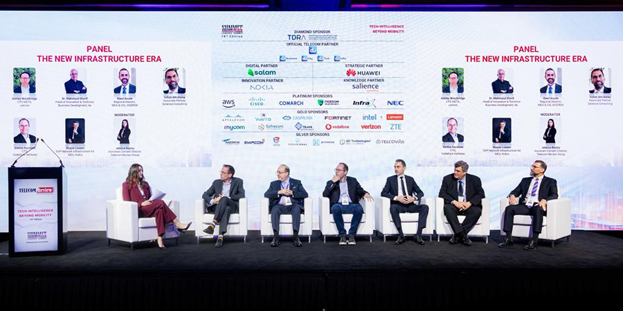 The panel included Ashley Woodbridge, CTO META at Lenovo; Dr. Mahmoud Sherif, Head of Innovation & Technico Business Development at du; Raed Aoude, Regional Director for MEA & CIS at ANDREW; Sabah AlKubaisy, Associate Partner at Salience Consulting; Stelios Savvides, CTO at Vodafone Ventures; and Roque Lozano, SVP Network Infrastructure for MEA at Nokia. Jessica Bayley, Assistant Content Director of the Telecom Review Group, moderated the discussion, which highlighted the dual challenges of opportunity and disruption facing the industry.