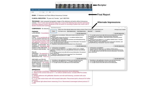 Scriptor Software enhances its rScriptor platform with generative AI, enabling radiologists to generate six alternative impressions instantly, streamlining reporting efficiency.